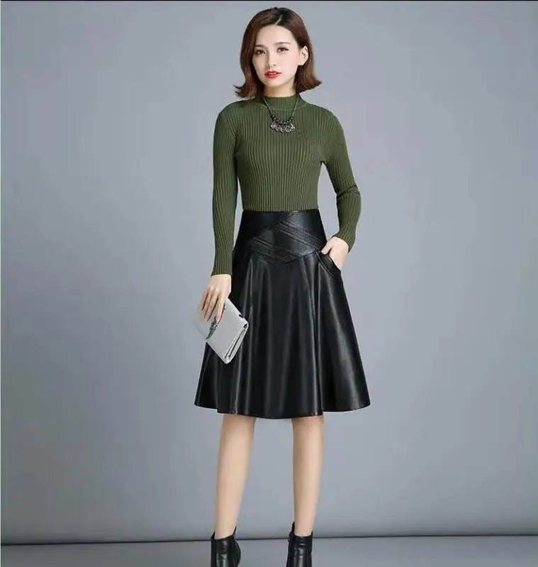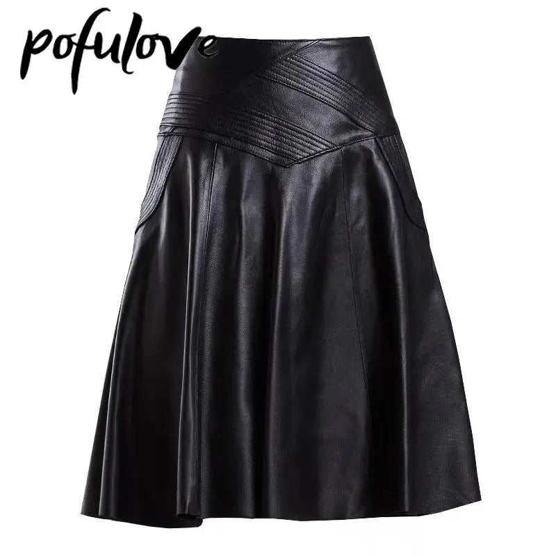 Skirts Womens Y2k High Fashion Hippie Skirts Korean Style Pleated Punk Skirt Leather Skirt A-LINE Lady High Waist Black Skirt