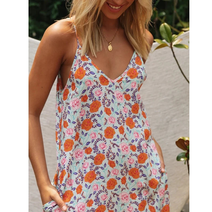 TEELYNN Sleeveless Strap Dress 2023 Vintage Floral Print Backless Sexy summer dress Vestidos Beach Casual Women Slip Dresses