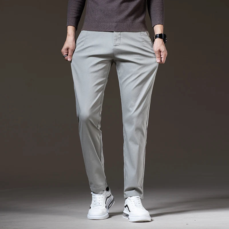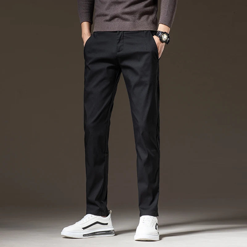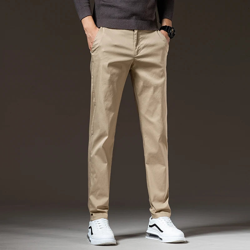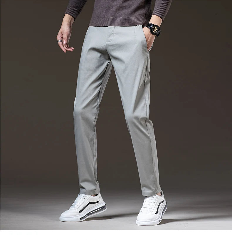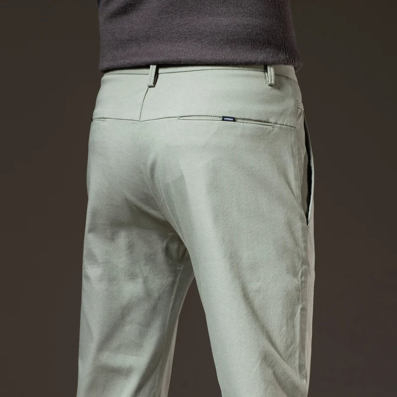 Spring New Men's Slim Casual Pants Elastic Cotton Smooth Breathable Fashion Korean Business Work Trousers Black Khaki Green