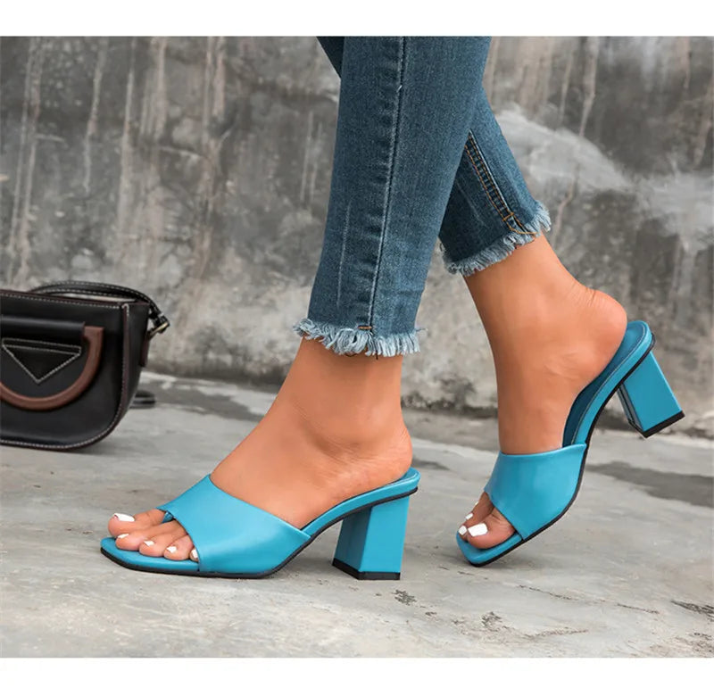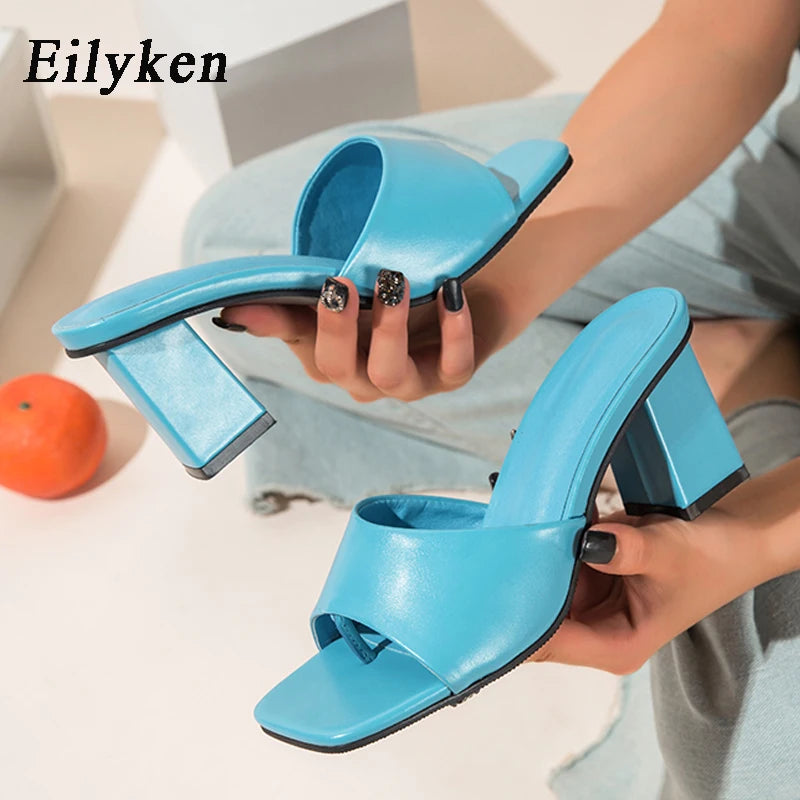 Eilyken Purple Slipper Summer Outdoor Sandal Women Square High Heel Beach Slip On Flip Flop Slides Size 41 42