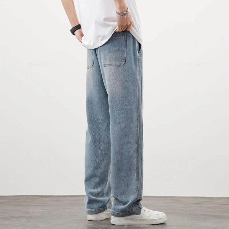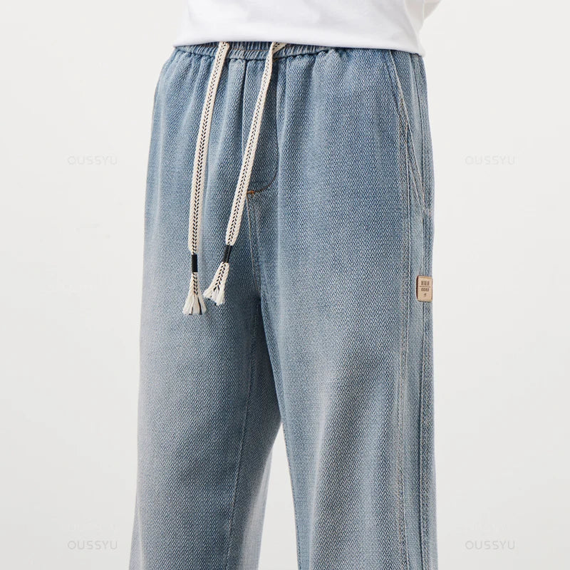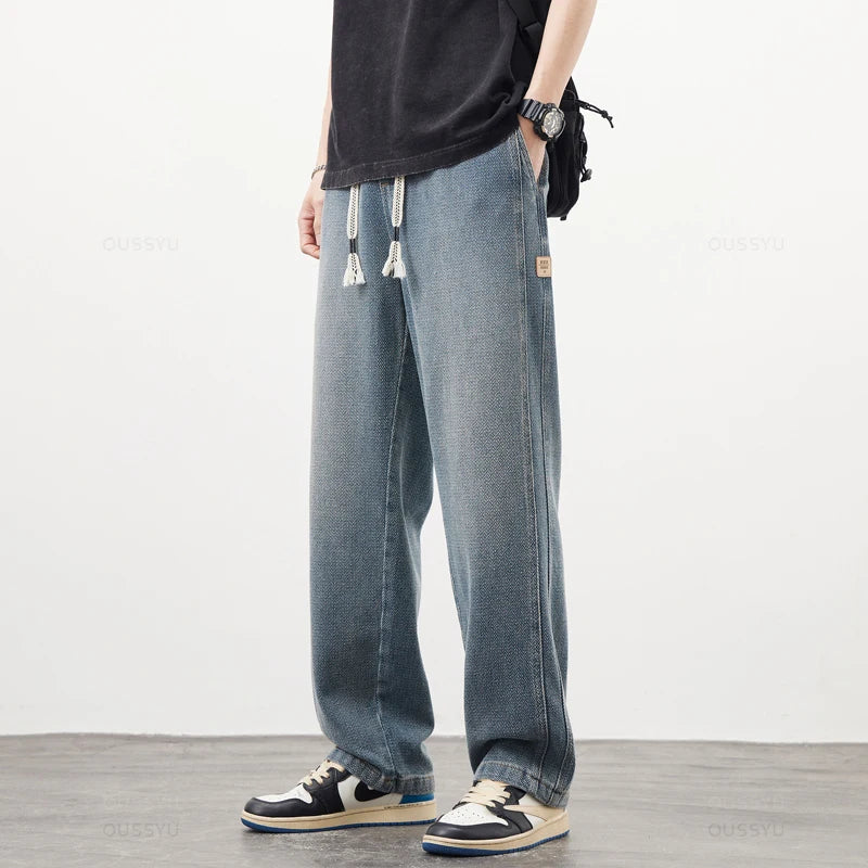 Brand Clothing High Quality Starry Sky Texture Fabric Men's Jeans Loose Straight Denim Pants Elastic Waist Drawstring Trousers