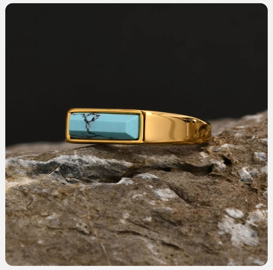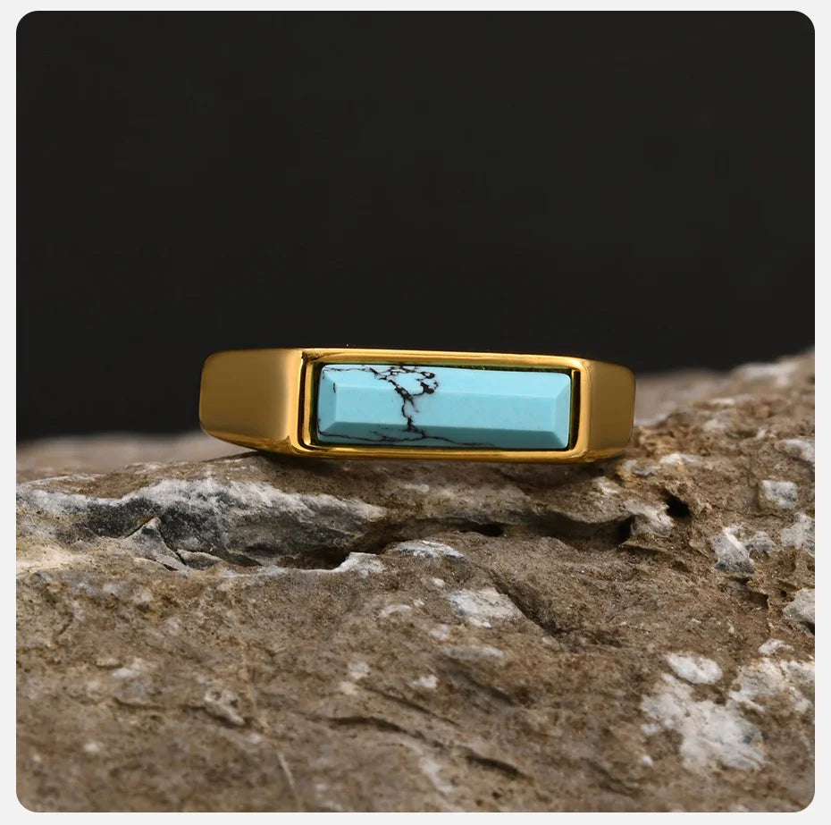 Vnox Natural Stone Signet Ring for Men Women, Unisex Gold Plated Stainless Steel Finger Band,Fraternal Ring Gift