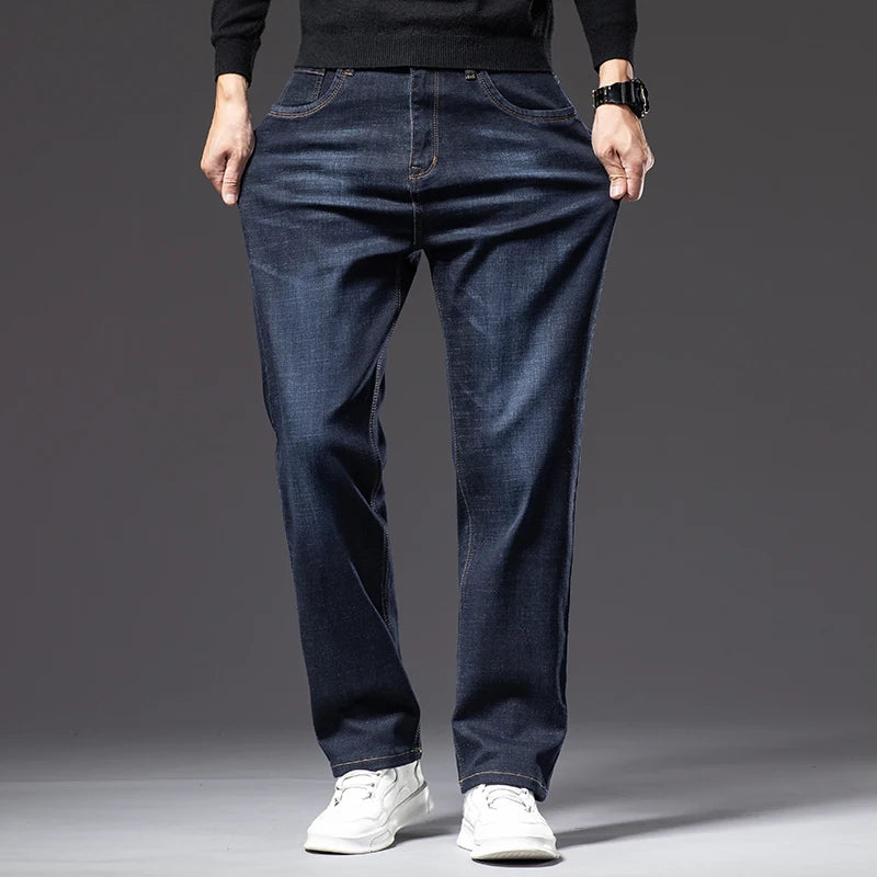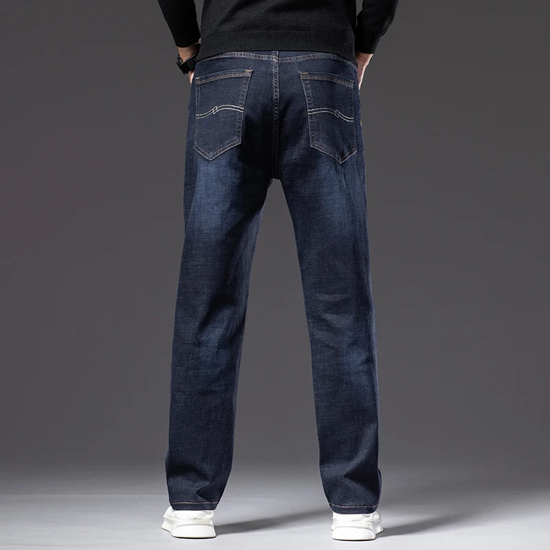 Autumn Men's Dark Blue Straight-leg Brand Jeans Classic Style Business Casual Cotton Stretch Denim Pants Male Plus Size 40 42 44