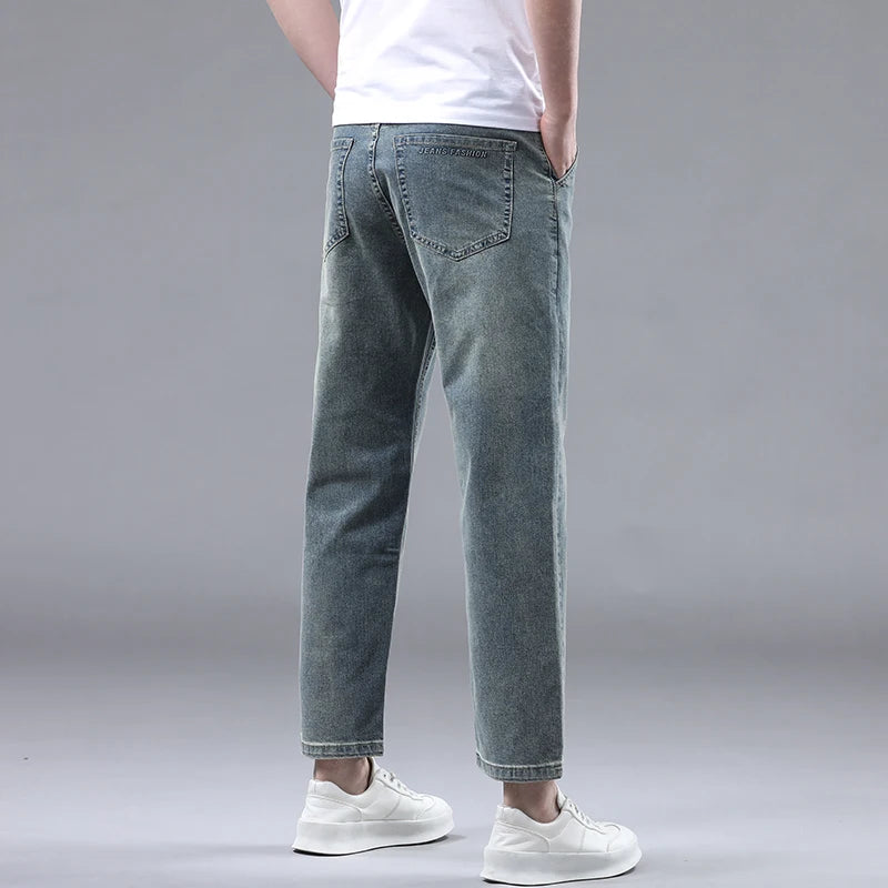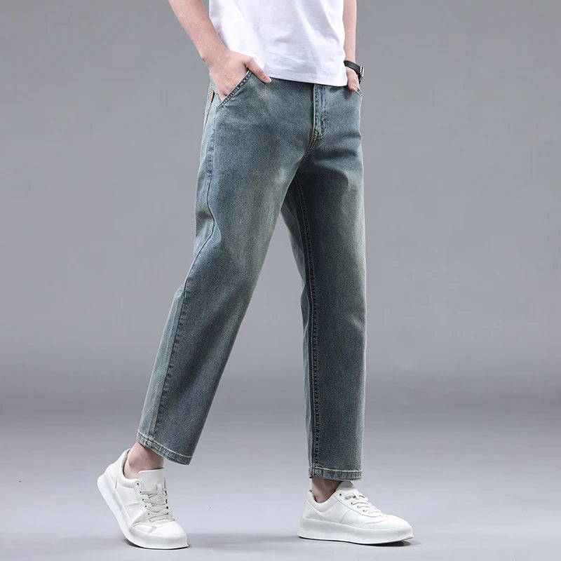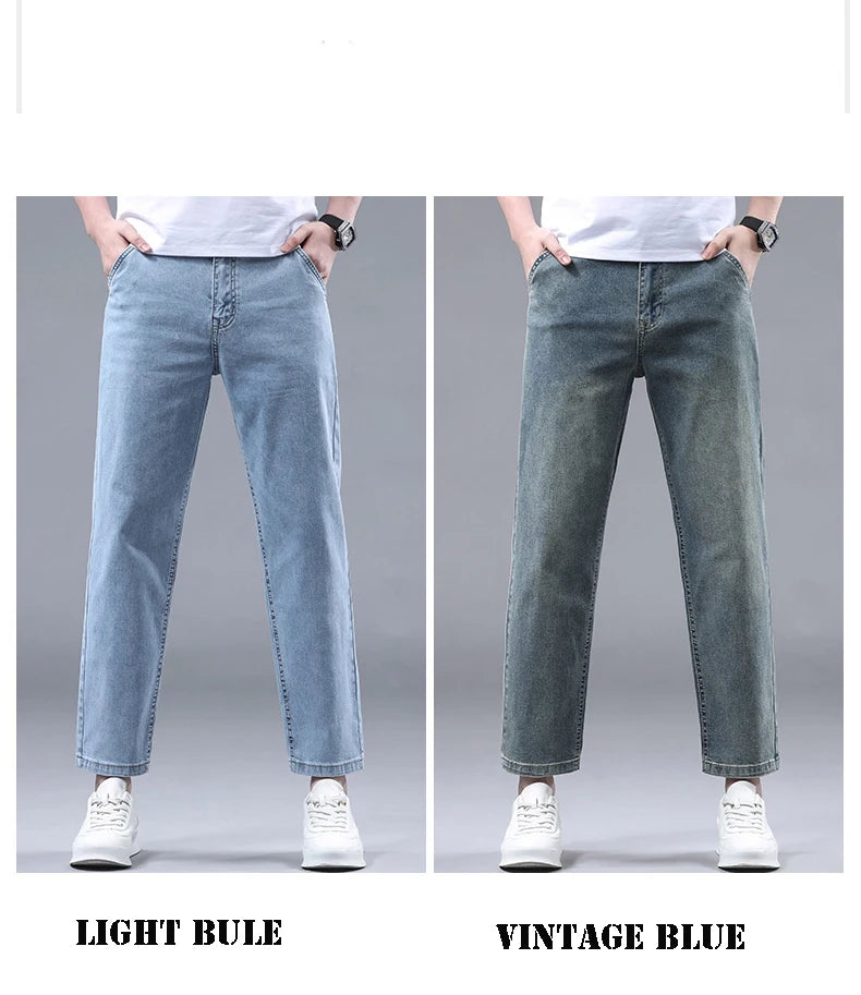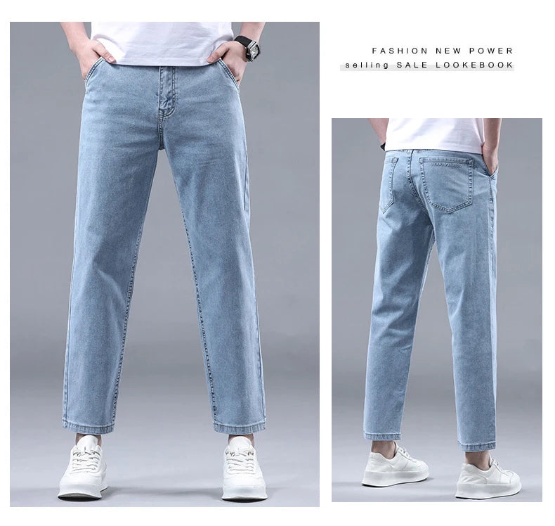 New Summer 95% Cotton Straight Thin Jeans for Men Classic Style Stretch Soft Fabric Light Blue Denim Ankle-Length Pants Male