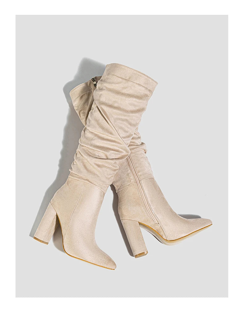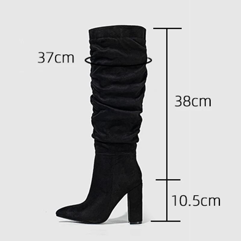 Eilyken Street Style Pleated Pointed Toe Zip Thigh High Boots Female Square Heel Design Over The Knee Women's Shoes