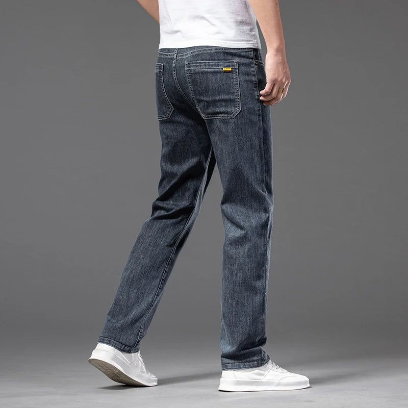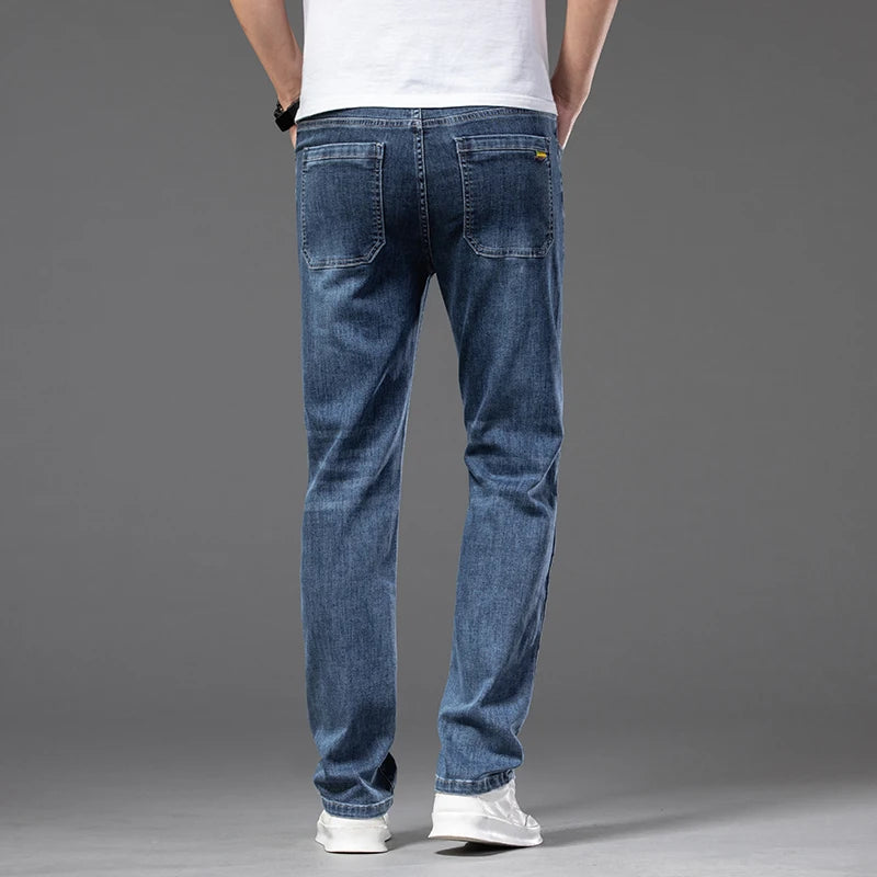 2024 Spring New Men's Stretch Loose Jeans Classic Brand Straight Business Casual Elastic Waist Denim Trousers Plus Size 42 44 46