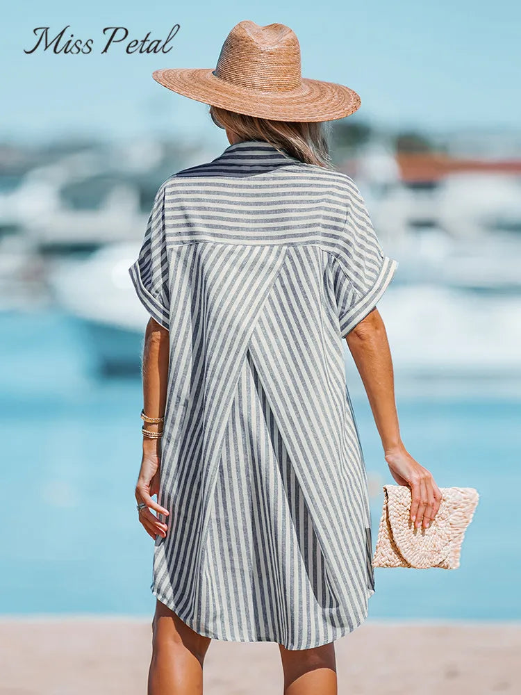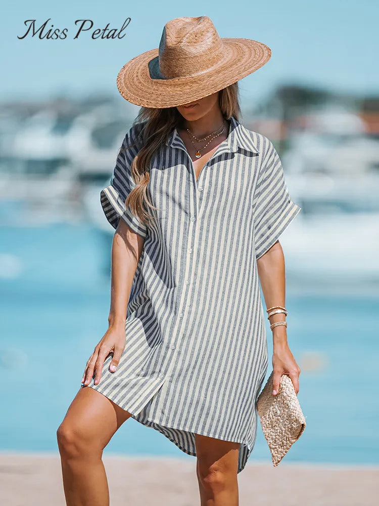 Striped Oversized Shirt Dress For Women Sexy Short Dolman Sleeve Loose Mini Dress 2023 Summer Female Sundress