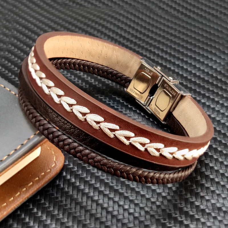 Hip-hopMaterial: 316L Stainless Steel Magnetic Clasp + LeatherFeature