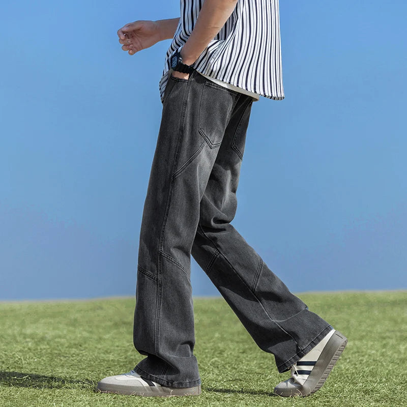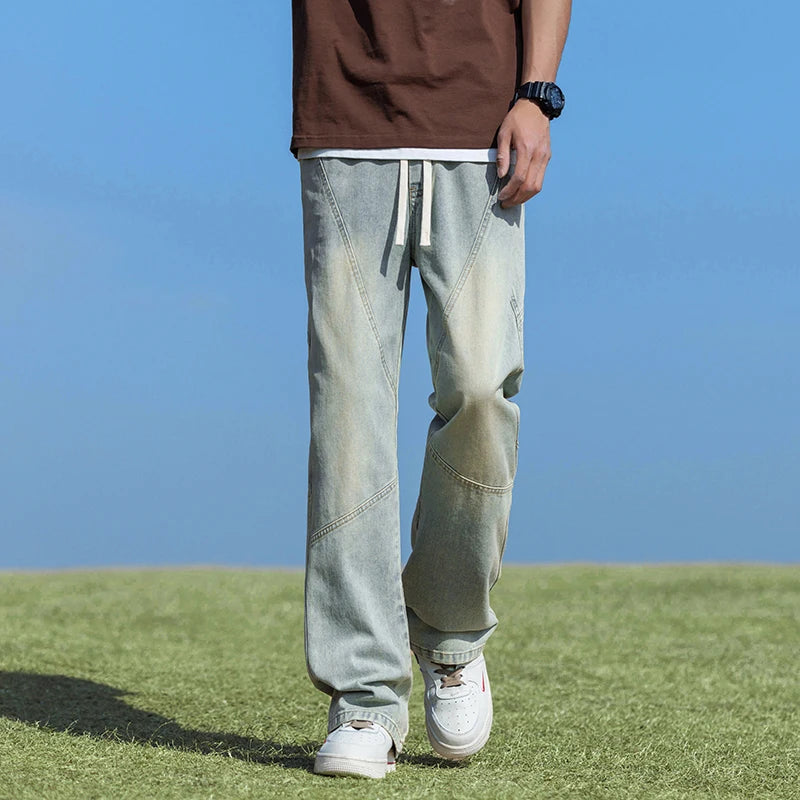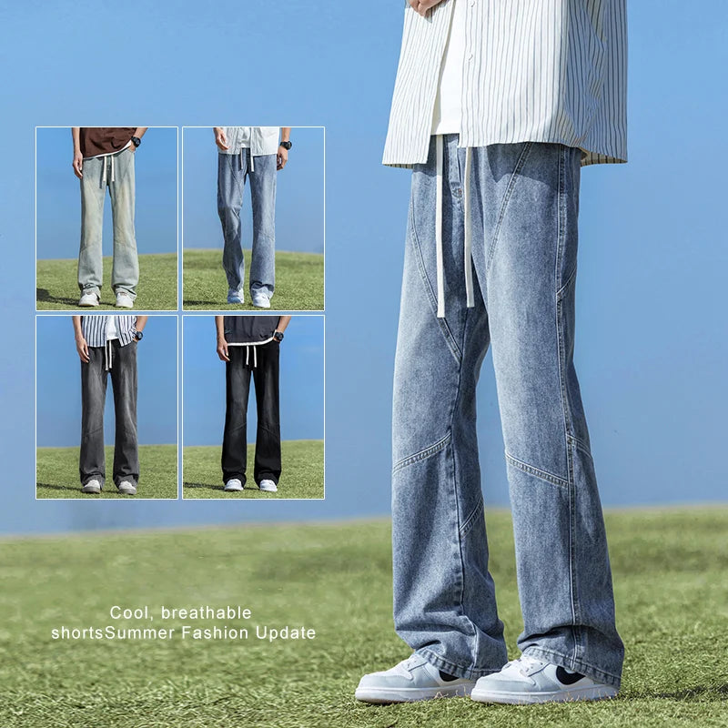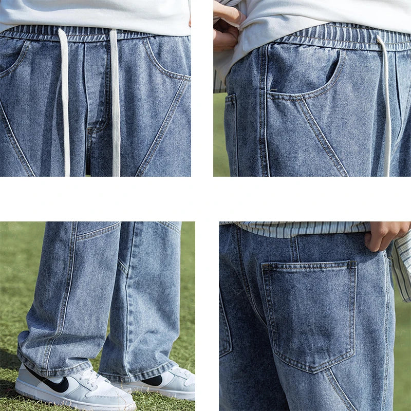 2024 Spring New Style Men's Baggy Jeans Elastic Waist Streetwear Korean Fashion Denim Wide-leg Pants Male Brand Clothes Y2k