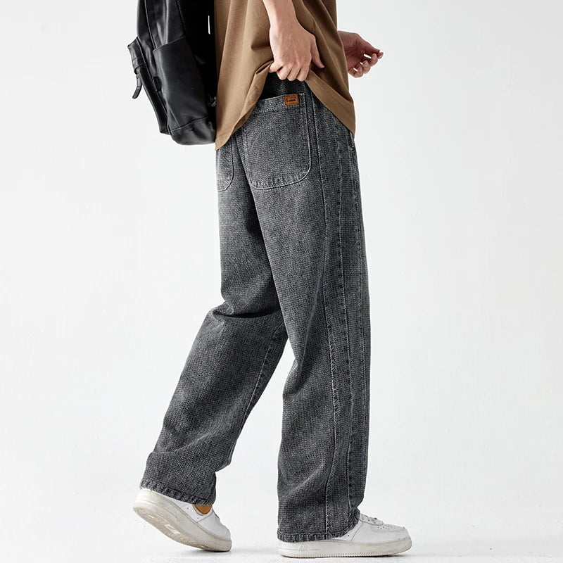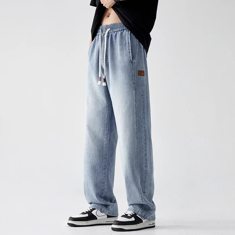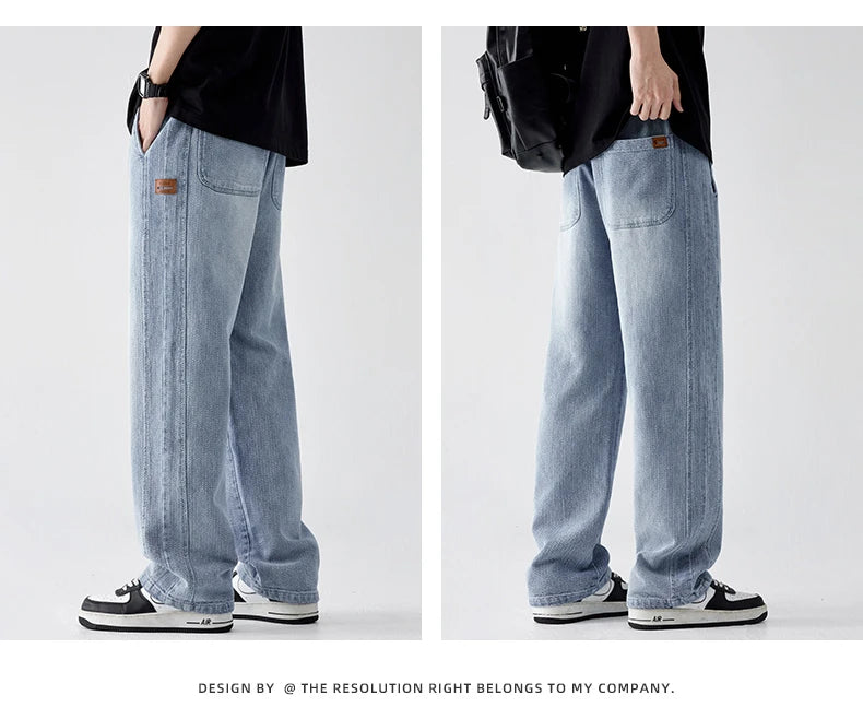 Spring New Style Men's Baggy Jeans Elastic Waist Work Clothes Straight Loose Retro Fashion Denim Wide-leg Pants Trousers