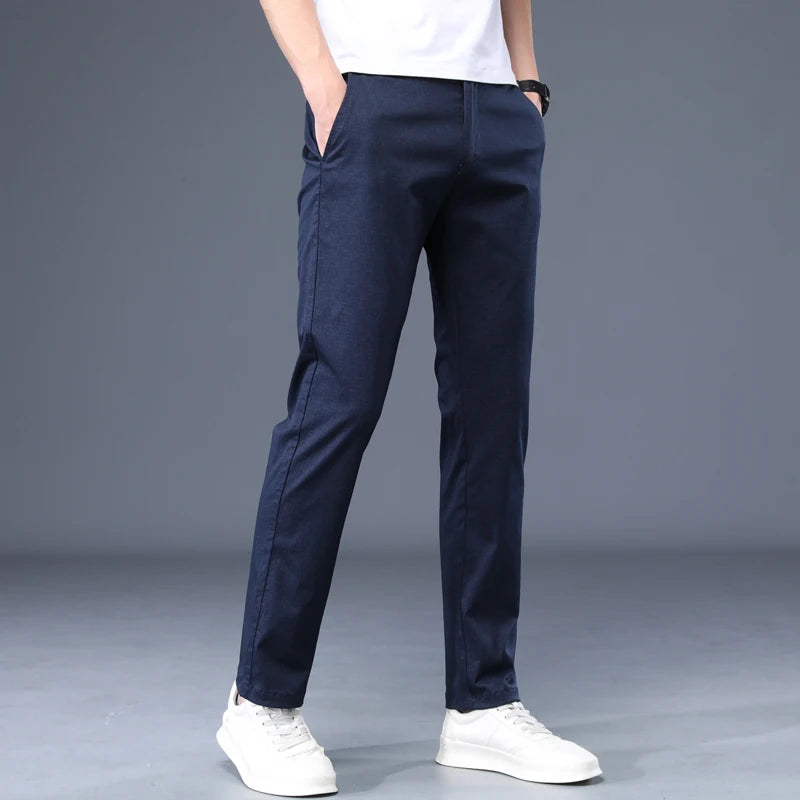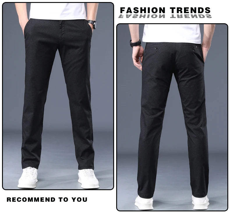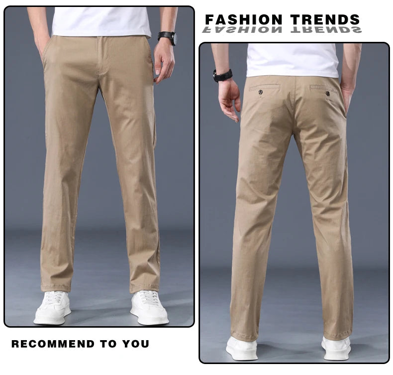 Summer 97% Cotton Men Thin Regular Fit Casual Pants High Quality Business Fashion Small Plaid Straight Trousers Male Brand