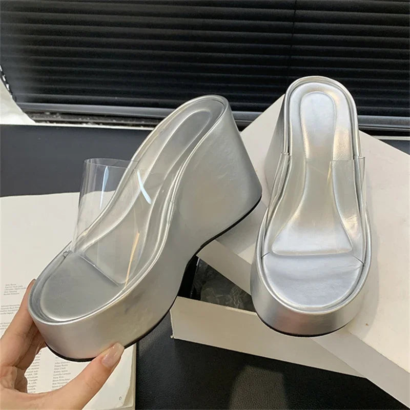 Eilyken Summer Fashion PVC Transparent Women Slippers Solid Platform Wedges High Heels Shoes Peep Toe Sandals Ladies Shoes