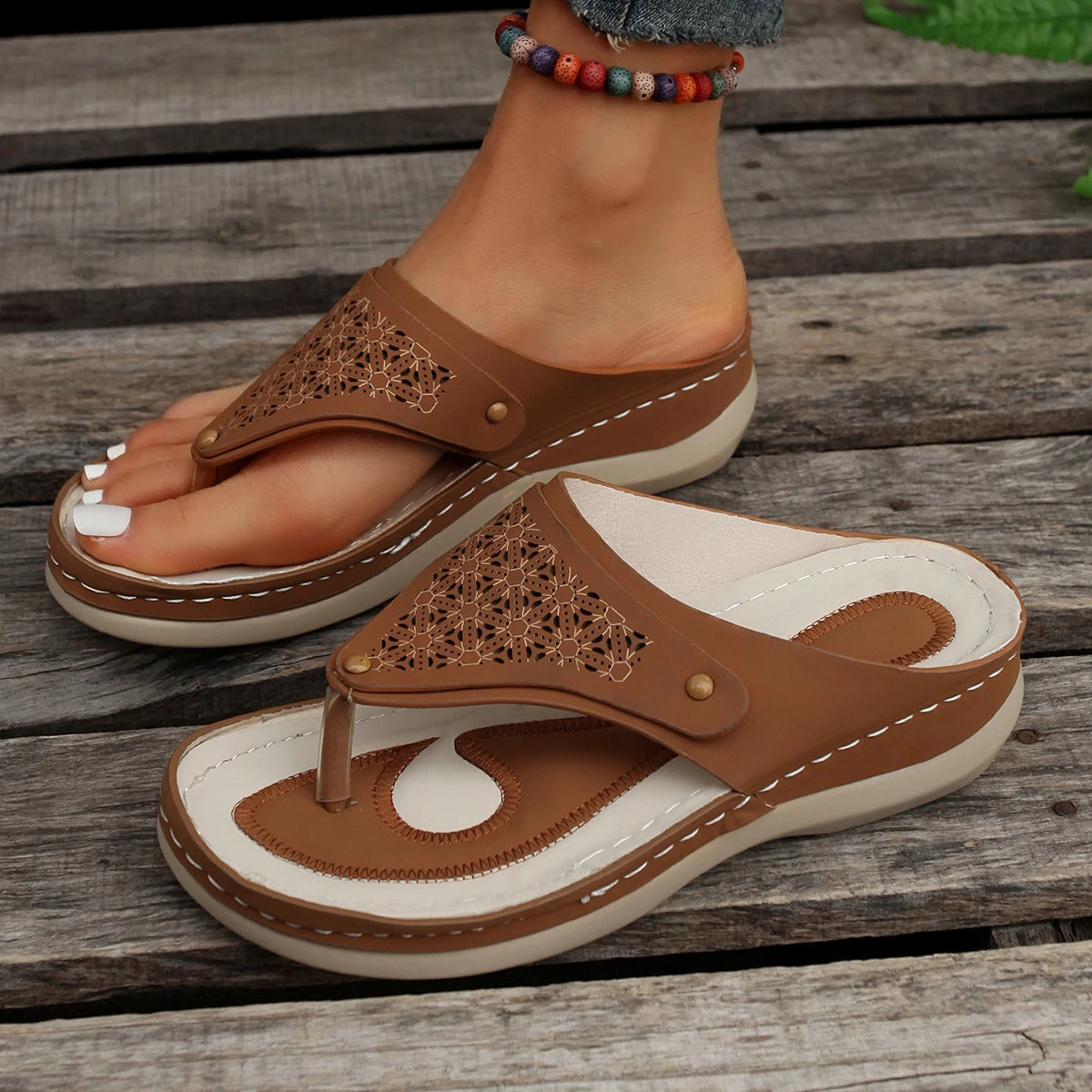 Aphixta Women New Summer Sandals Open Toe Fretwork Flip Flops Wedges Comfortable Slippers Sandals Plus Size 35~43 Outdoor Slides