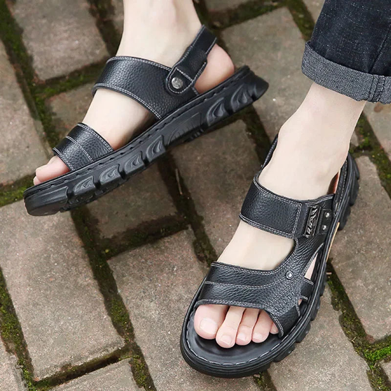 2024 Summer Shoes Men Sandals Genuine Leather Flat Non-slip Holiday Mens Footwear Soft Comfortable Black Brown D076