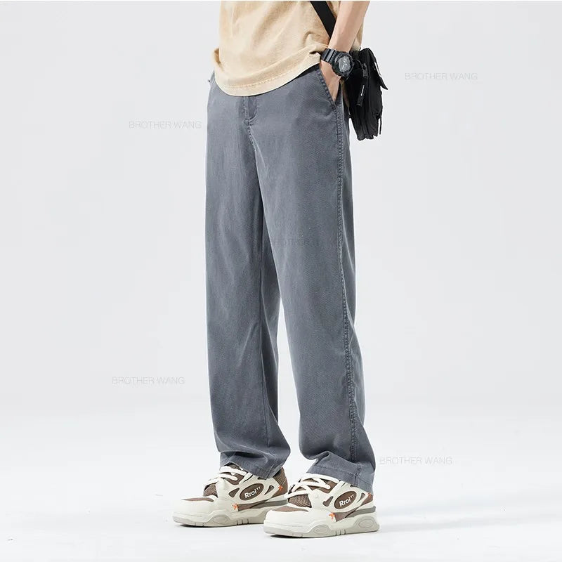 Summer Thin Baggy Lyocell Jeans Men's Fashion Ice Silk Elastic Waist Fashion Business Casual Straight Trousers Blue Gray Black