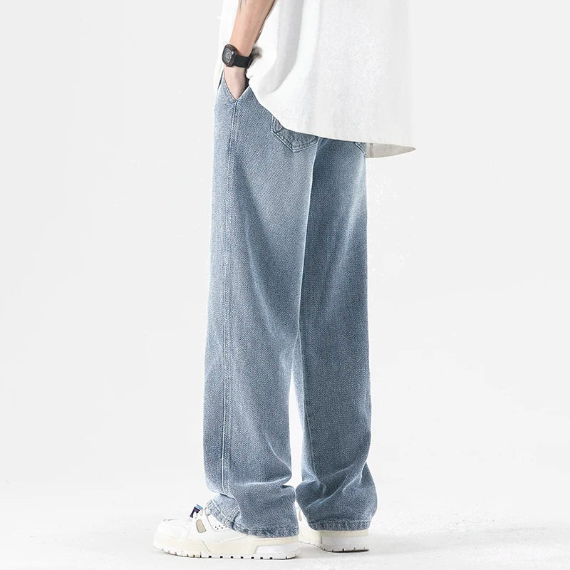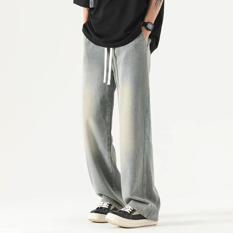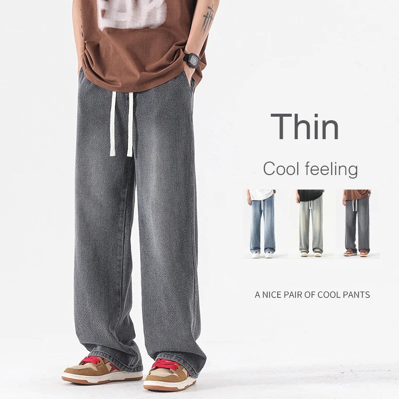 2024 New Summer Thin Men's Baggy Jeans Elastic Waist Streetwear Ins Korean Fashion Denim Wide-leg Pants Male Brand Clothes