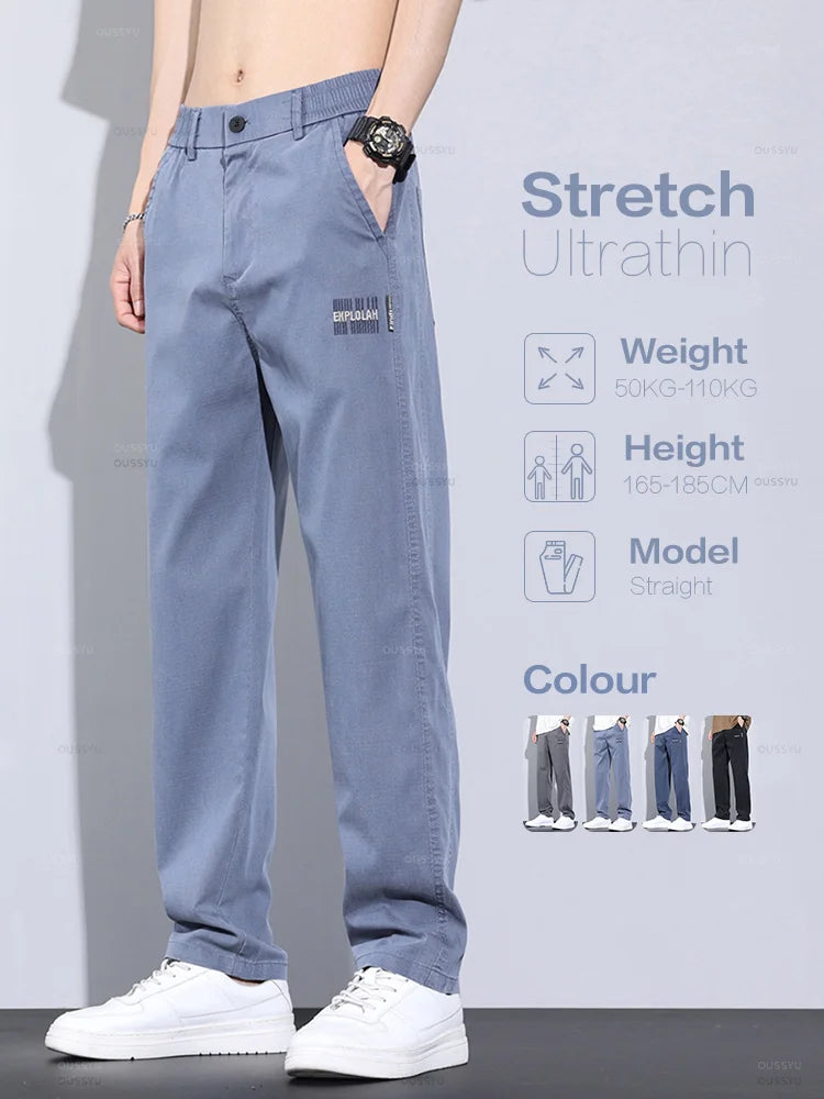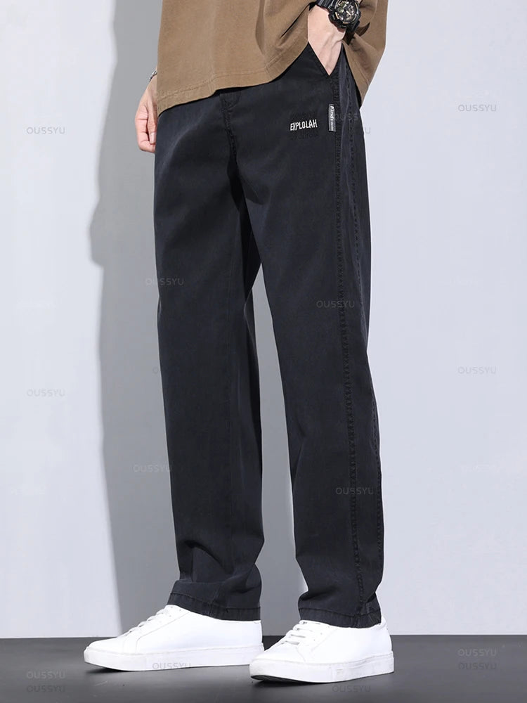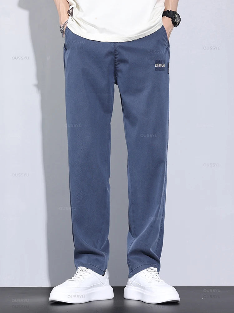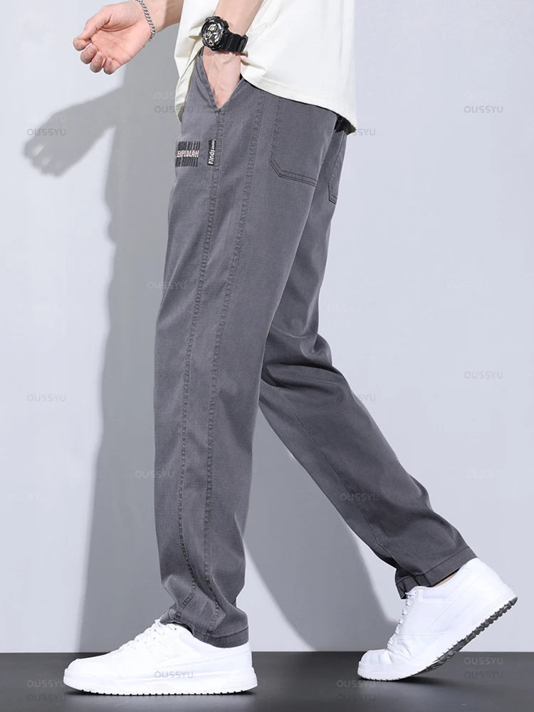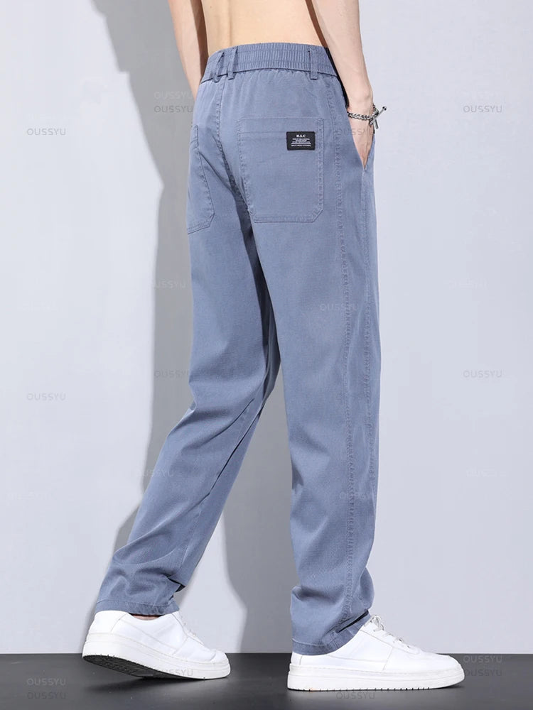 New Upgraded Summer Thin Soft Cosy Lyocell Fabric Men's Pants Baggy Straight Elastic Waist Casual Wide Trousers Male Oversized