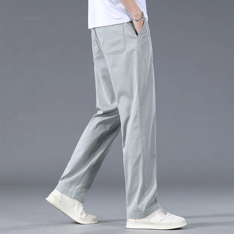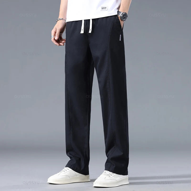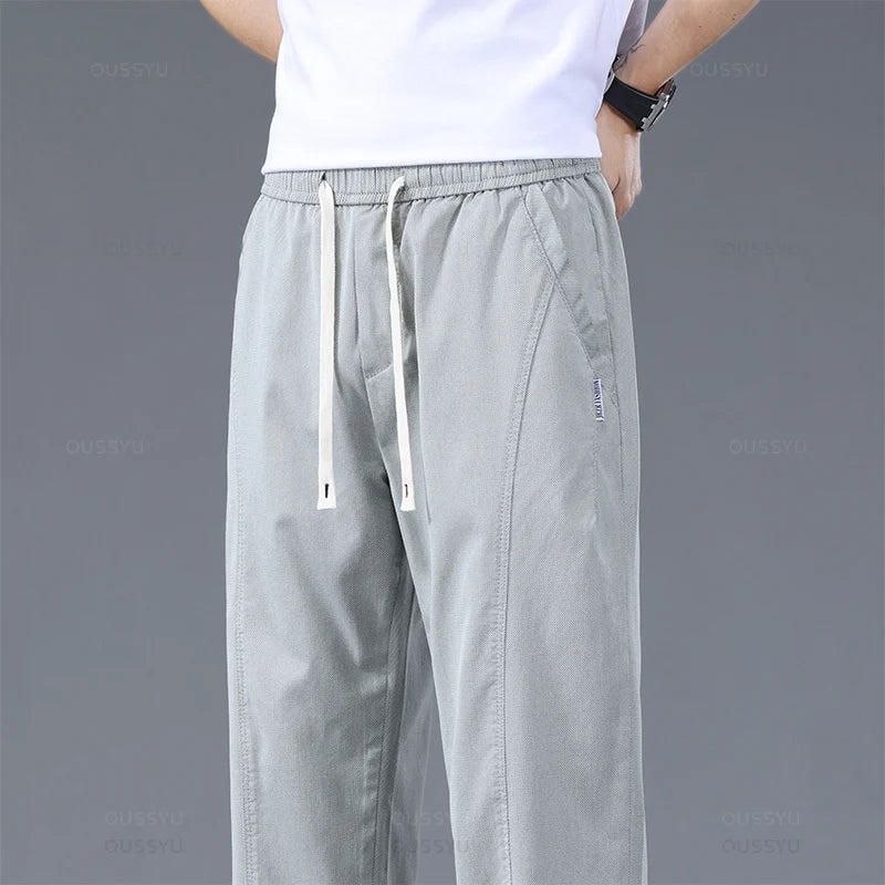 Summer Thin Soft Lyocell Fabric Men's Casual Pants Loose Wide Leg Elastic Waist Grey Work Casual Trousers Male Plus Size M-5XL