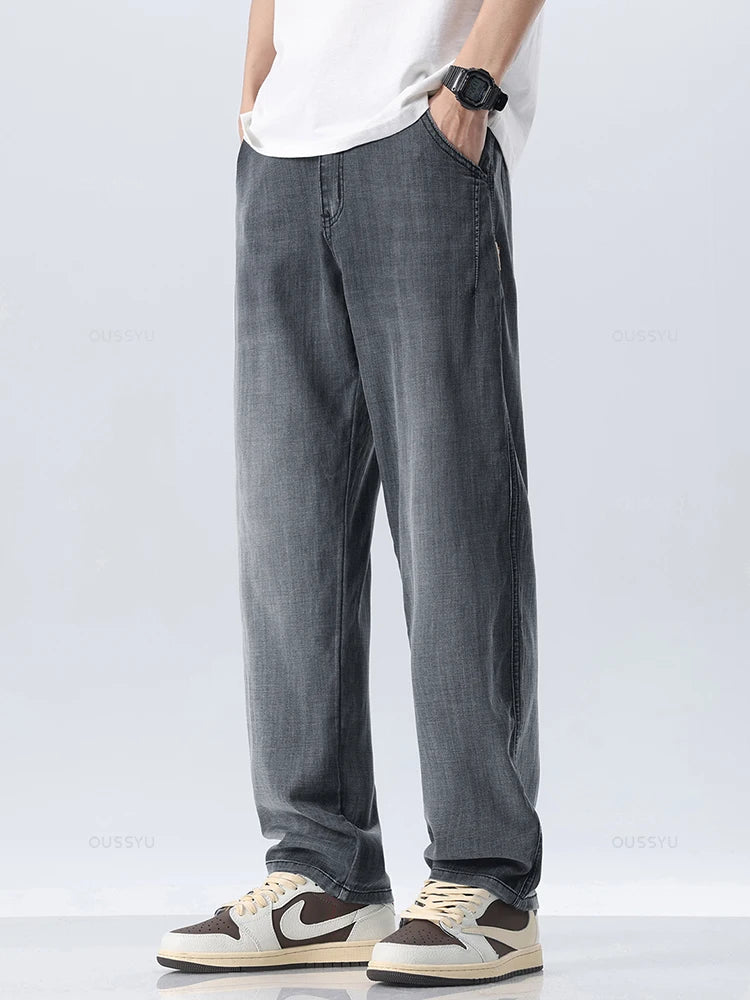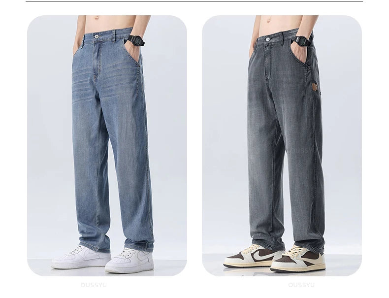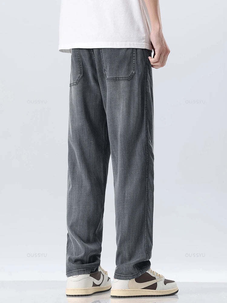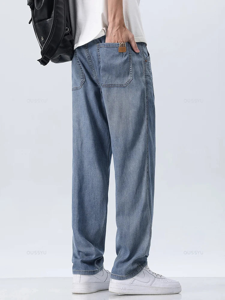 Brand Clothing New Design Summer Thin Soft Lyocell Fabric Men's Jeans Straight Denim Pants Casual Trousers Male Streetwear 28-38