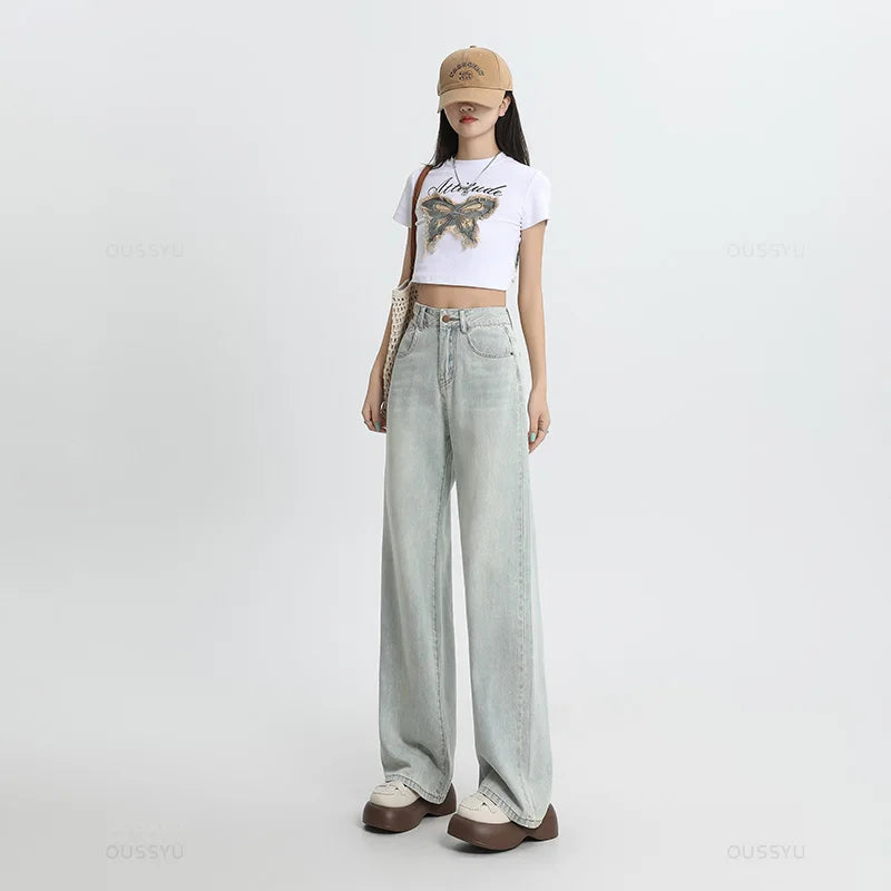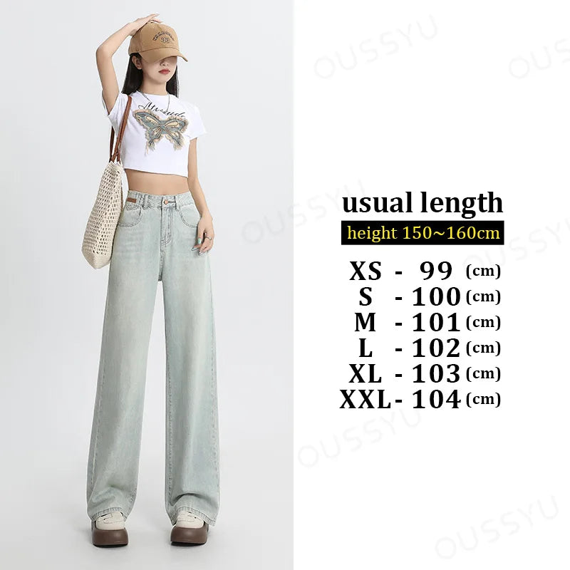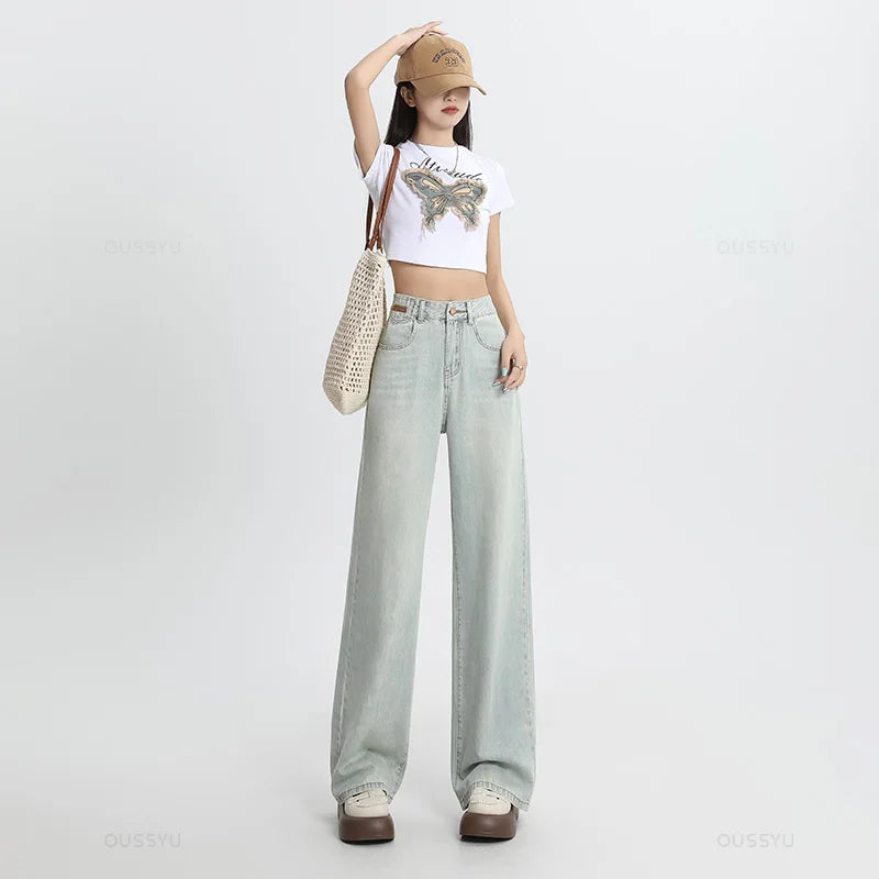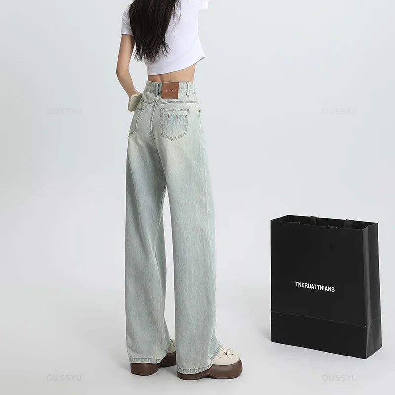 Summer Soft Lyocell Fabric Woman Jeans Thin Loose Wide Leg Straight High Waisted Pant Fashion Embroidery Comfort Casual Trousers