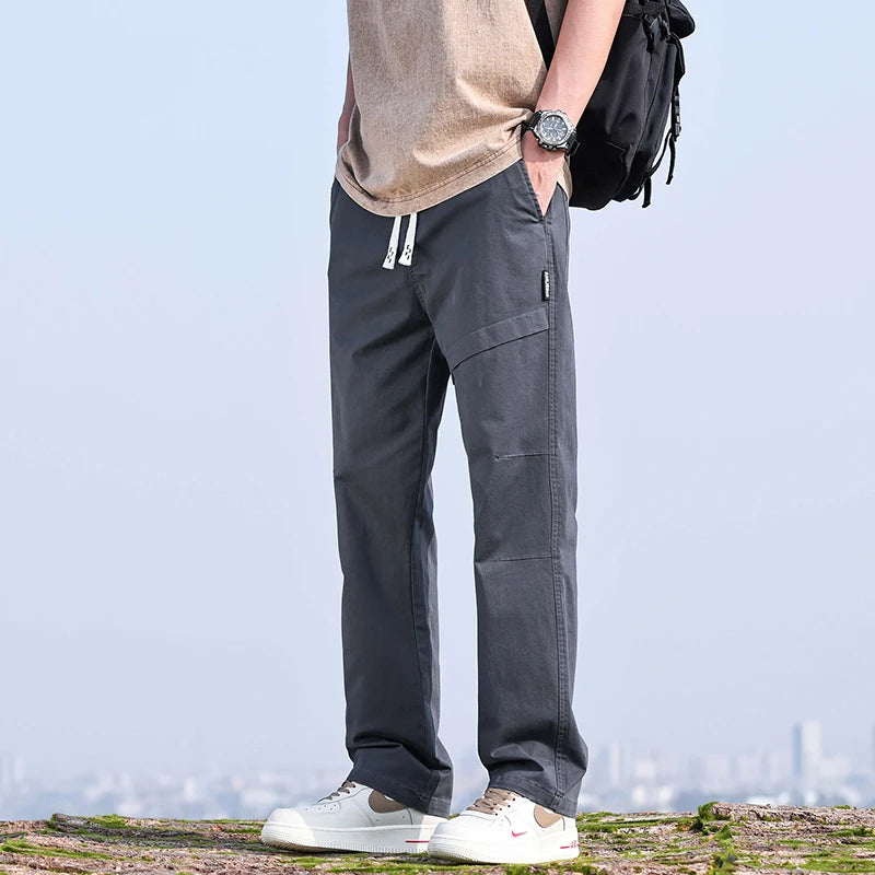Summer New Thin Men's Baggy Wide Leg Casual Pants Streetwear Solid Color Cargo Pants Drawstring Elastic Waist Trousers