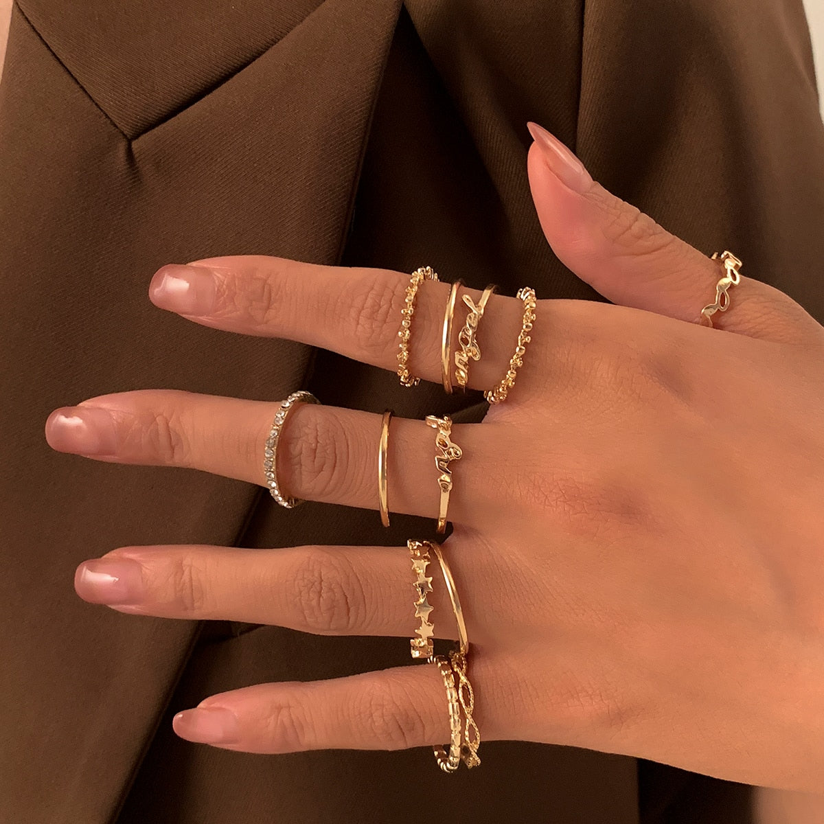 2021 New Design: Hollow Geometry Alloy Finger Rings Set