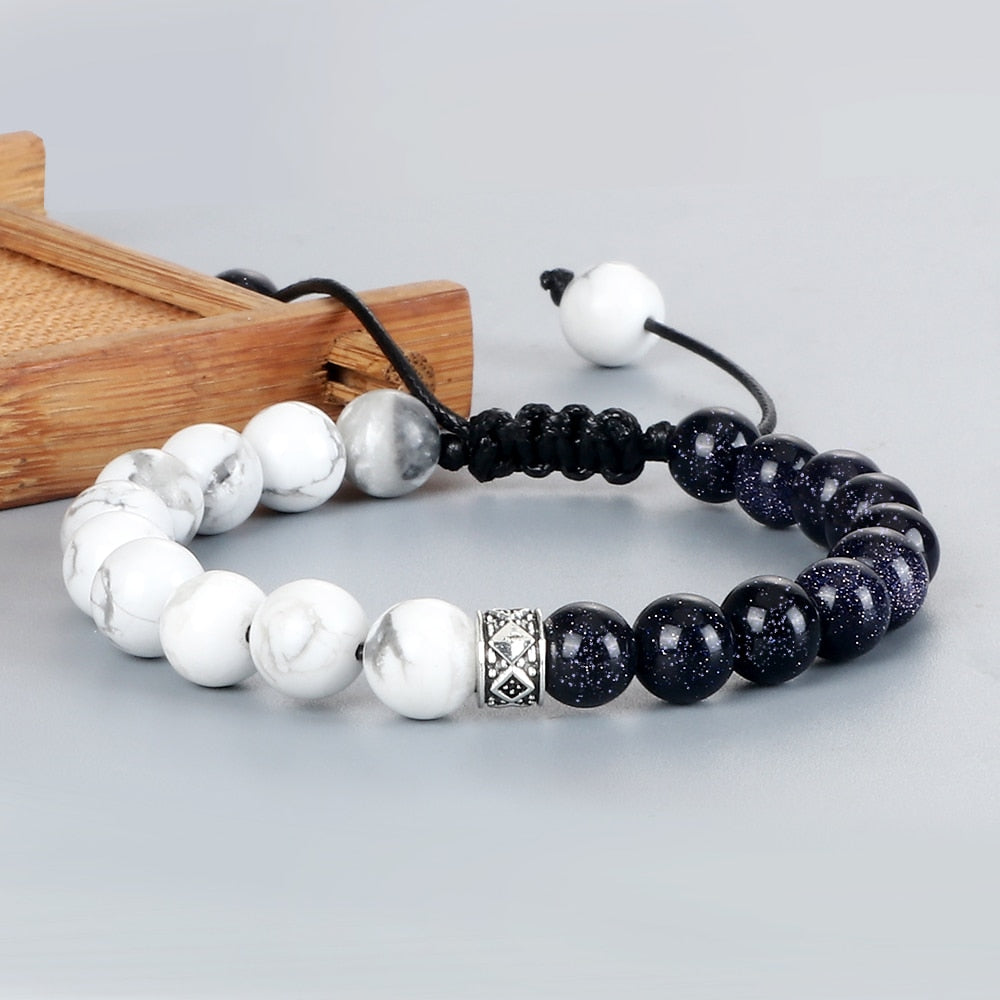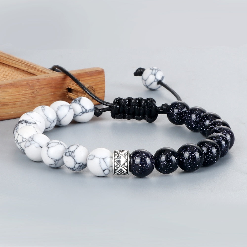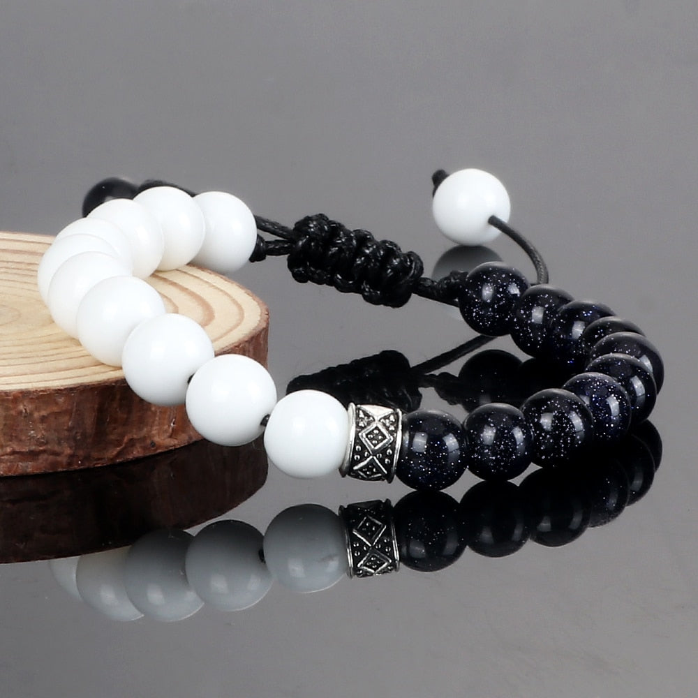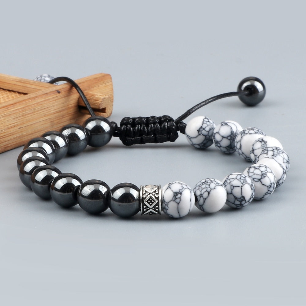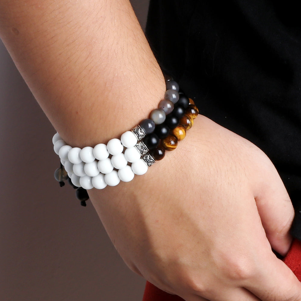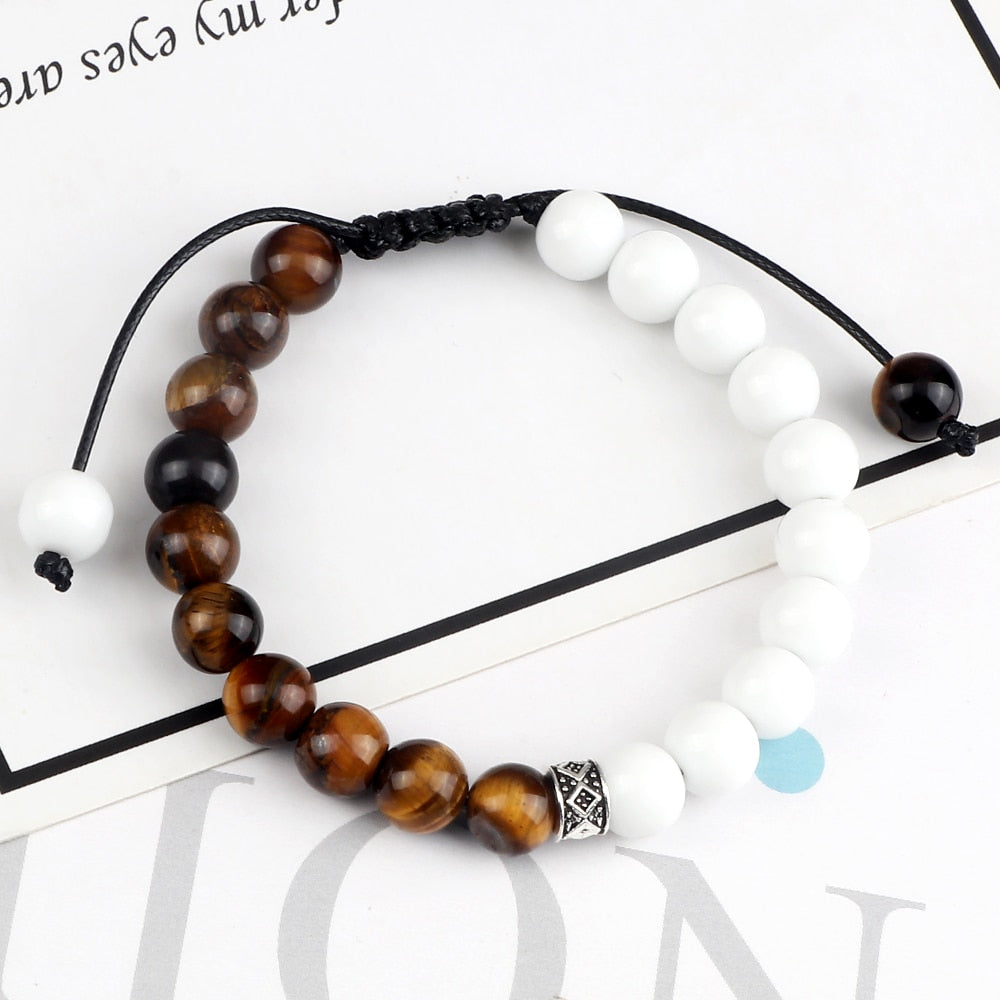 Trendy White Men Beads Bracelet Handmade Natural Tiger Eye Lava Stone