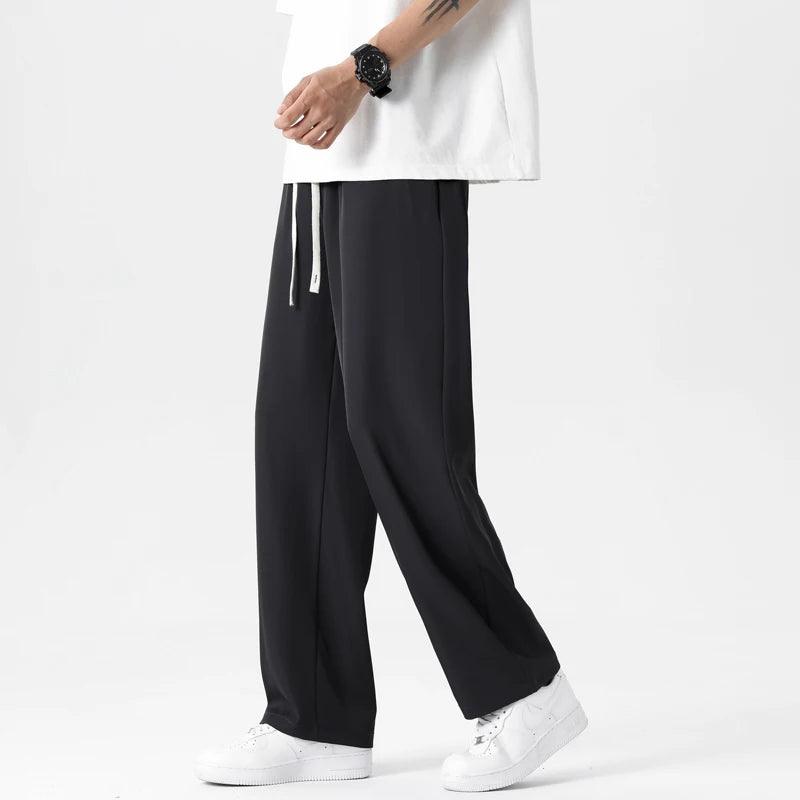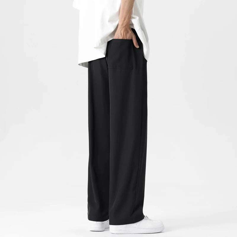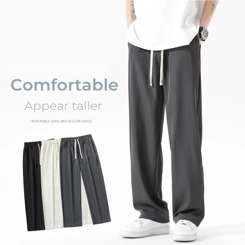 Summer New Ice Silk Trousers Men's Breathable Fashion Straight Loose Pants Elastic Waist Wide Drape Male Streetwear