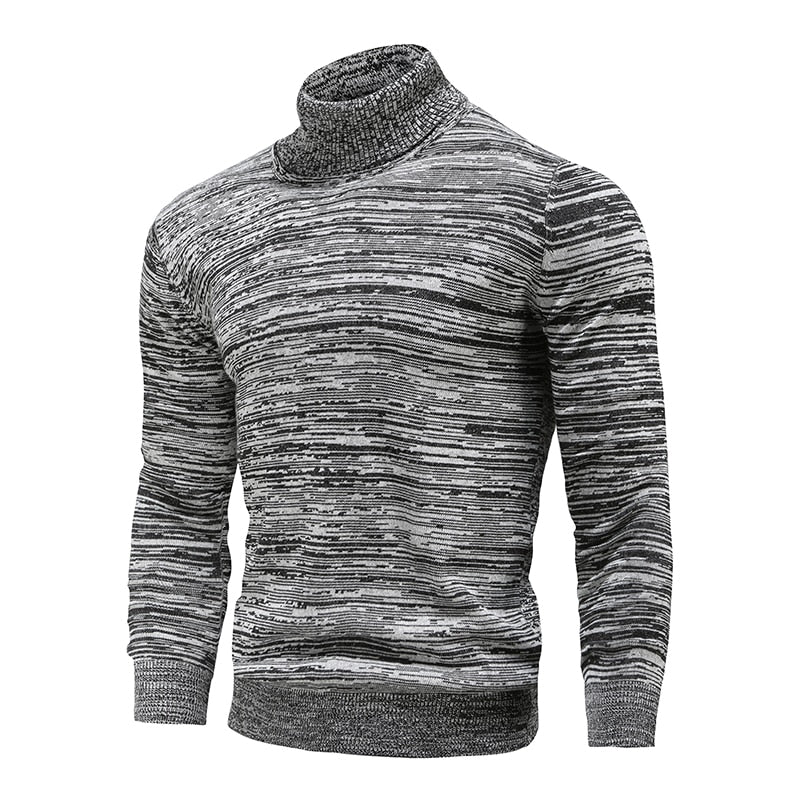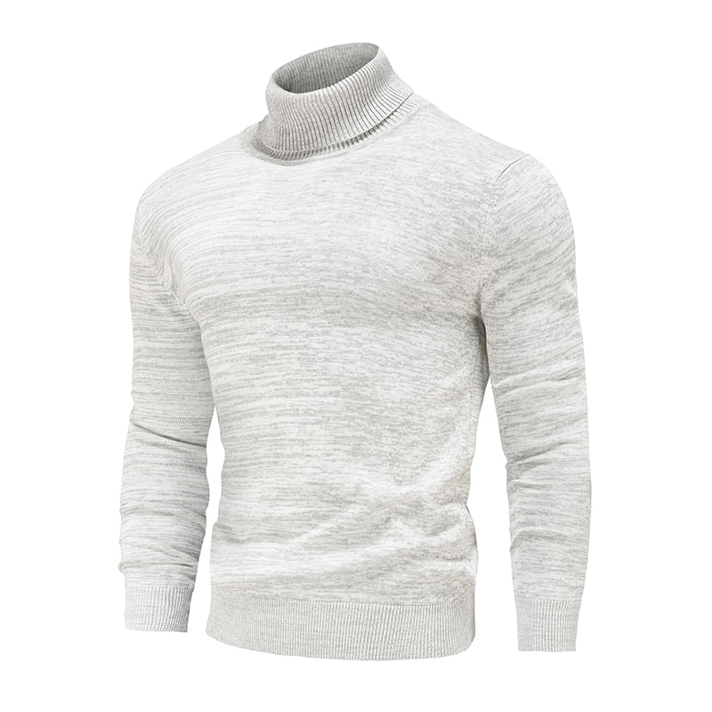 Turtleneck Cotton Slim Knitted Pullovers Men Solid Color Casual Sweaters