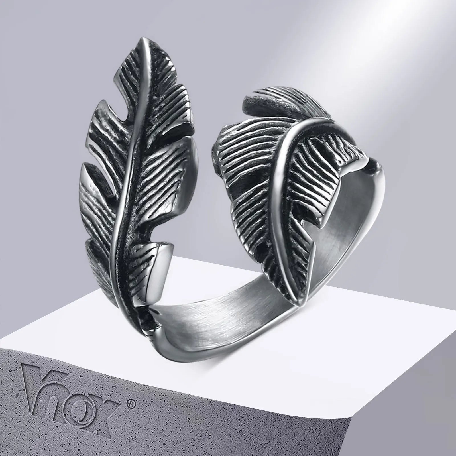 Vnox Vintage Feather Ring Men Jewelry Stainless Steel Biker Style Hand Polishing US Size 7 8 9 10 11 12