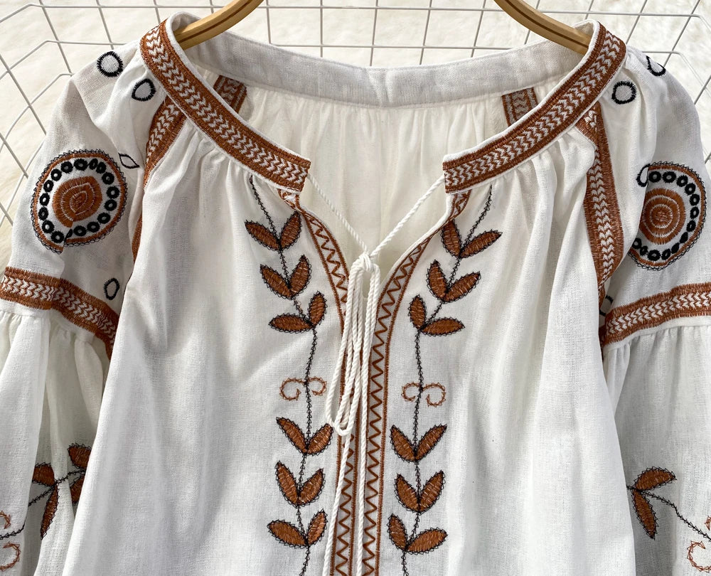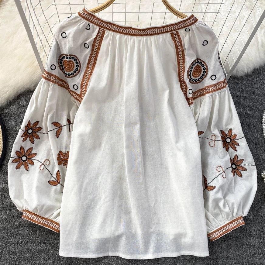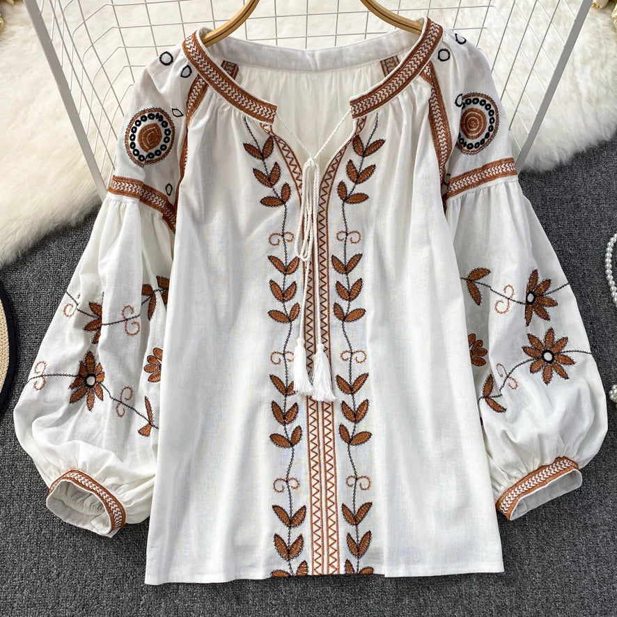 TEELYNN Vintage Long Sleeve Blouses Shirts Women Tops Casual Cotton Linen Floral Embroidery Loose Blouse Summer Boho Beach Blusa