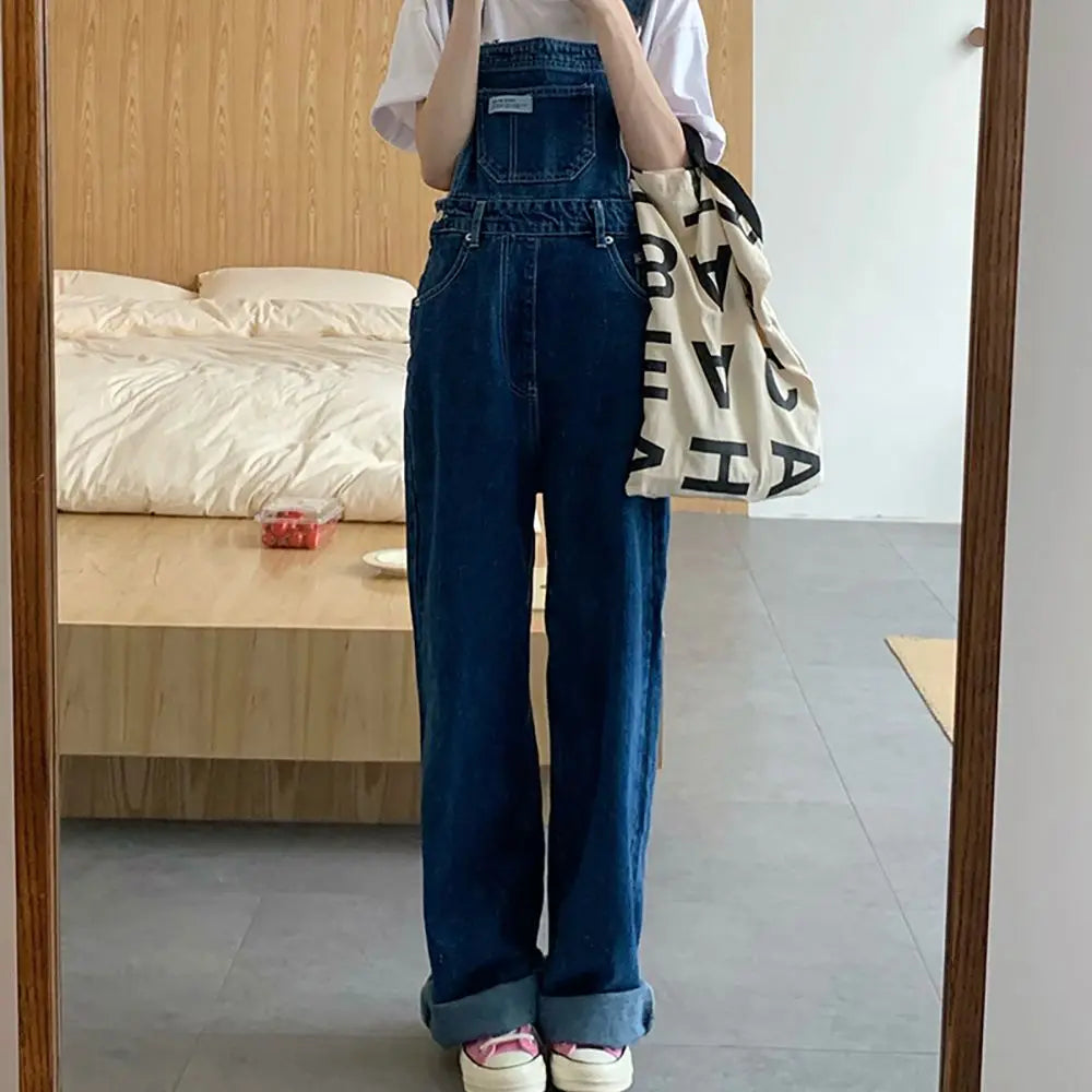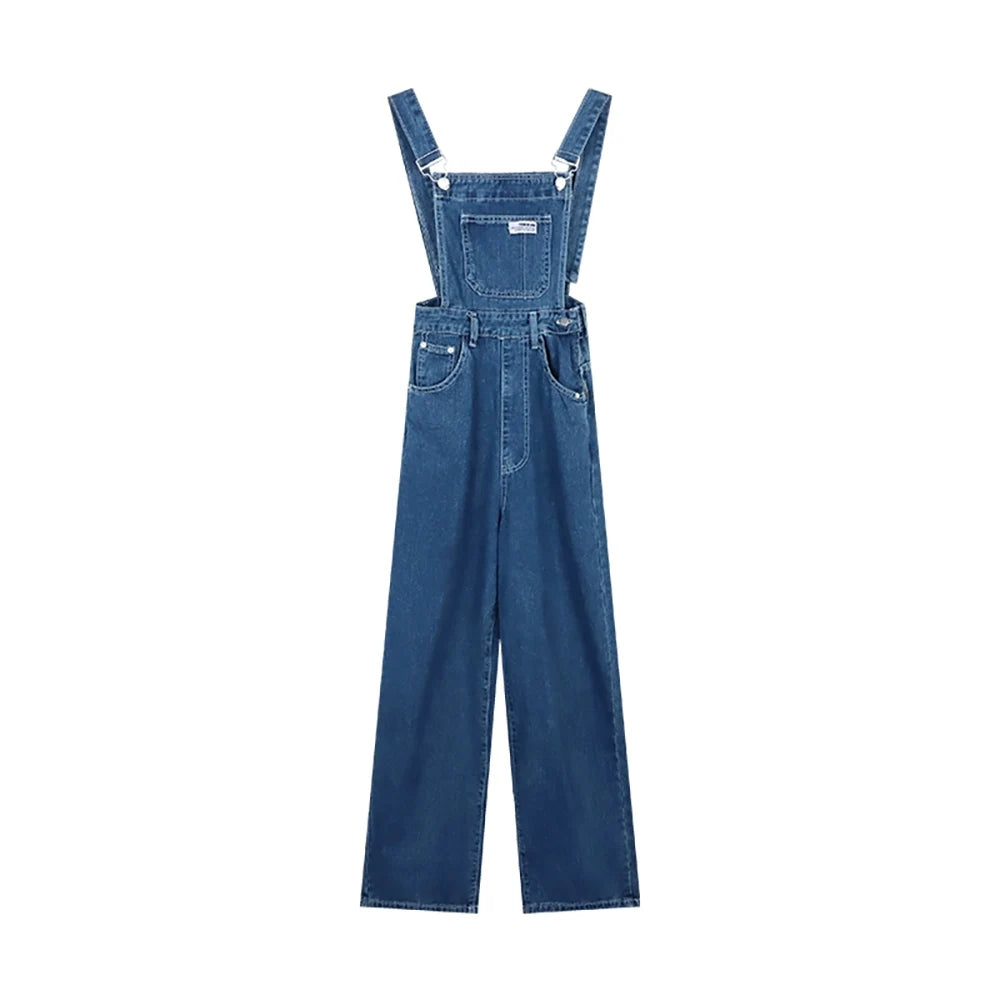 Vintage Straight Loose Denim Pants Women Overalls Fashion High Wasit Wide Leg Pants Jumpsuit Casual Straps Suspender Jeans