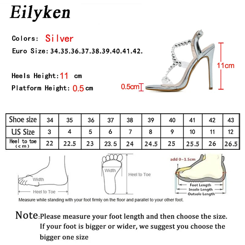 Eilyken Wedding Party Women Sandals Fashion PVC Transparent Crystal Rhinestone Slides Buckle Strap Stiletto Heels Shoes