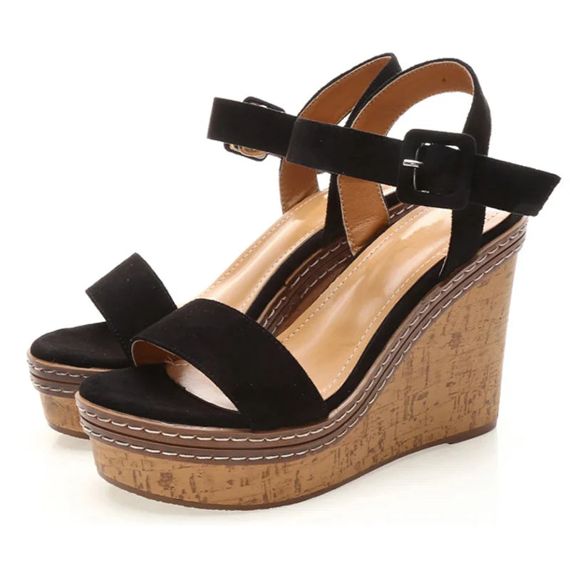 Aphixta Wedge Sandals Peep Toe Buckle Shoes Woman Platform Fashion 10cm Cool Summer Super High Heel Shoes Female