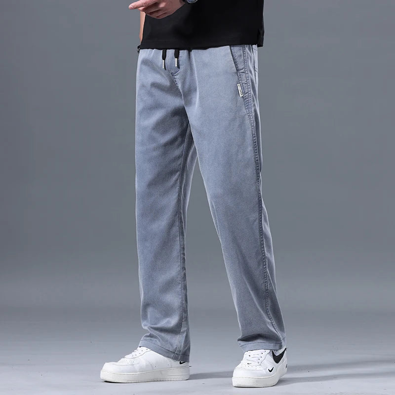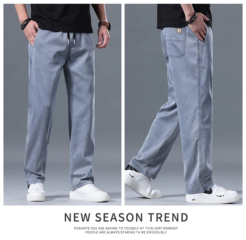 Summer New Youth Lyocell Tencel Wide-leg Casual Pants For Men Breathable Elastic Waist Sports Drape Trousers For Male