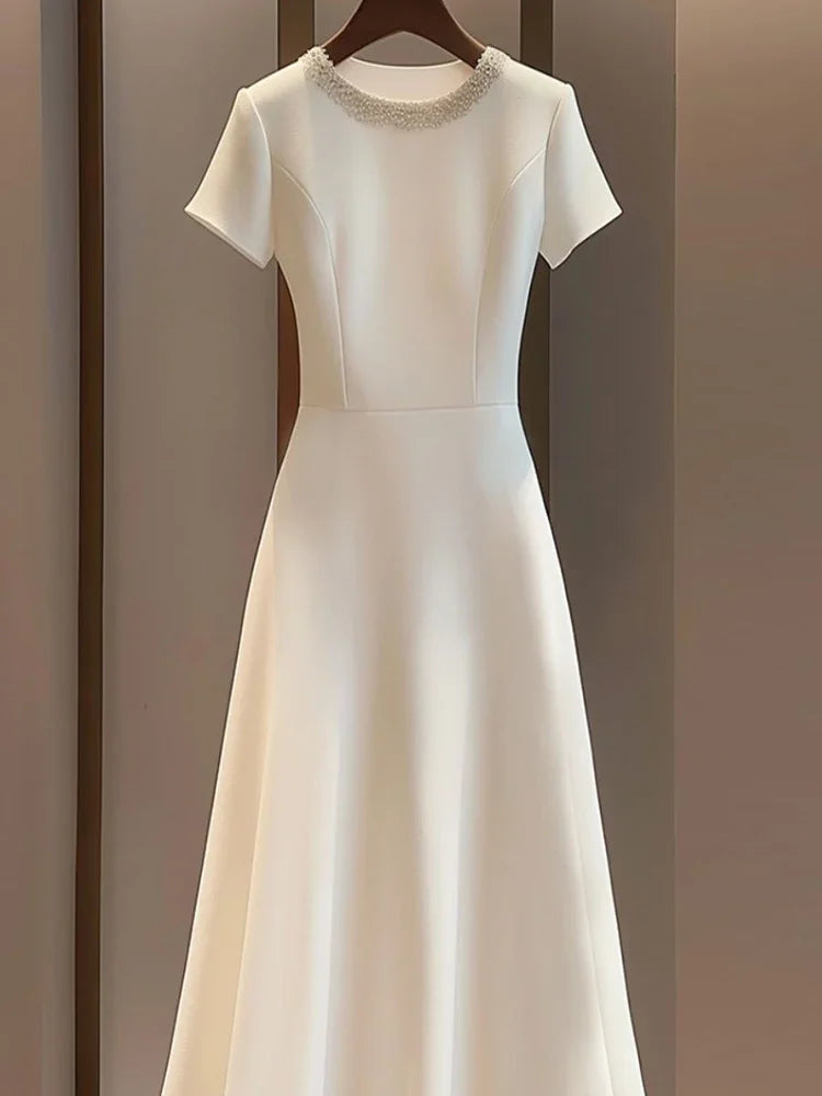 High End Dress for Women French Style Light Luxury Simple Patchwork Fabric Smooth Commuting Nail Bead A-line Skirt Dress