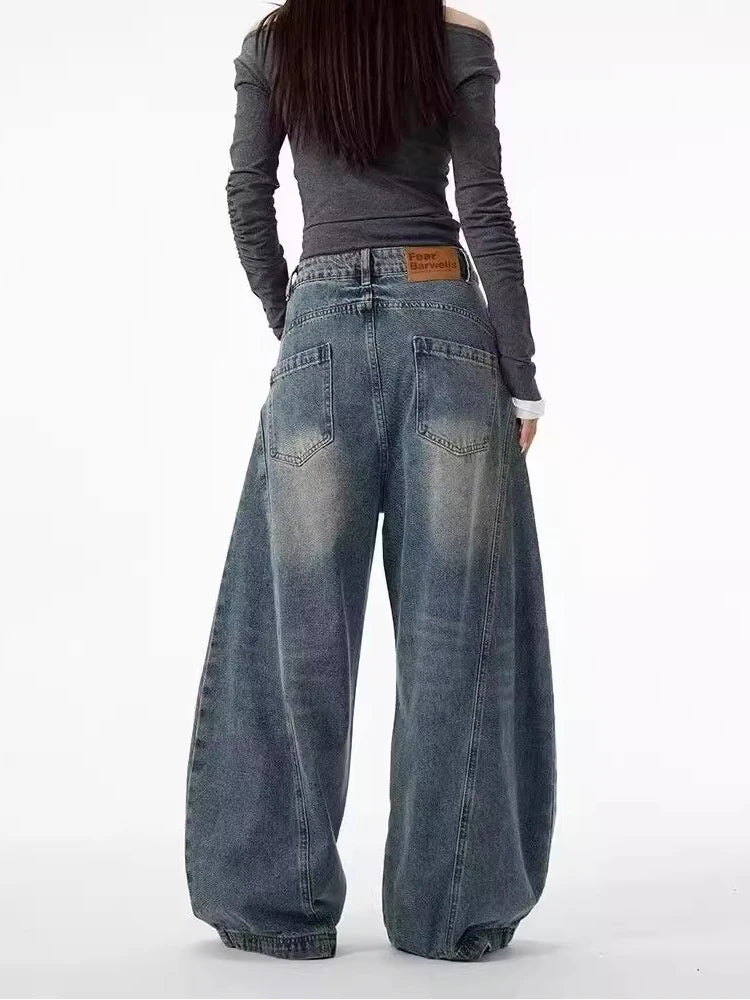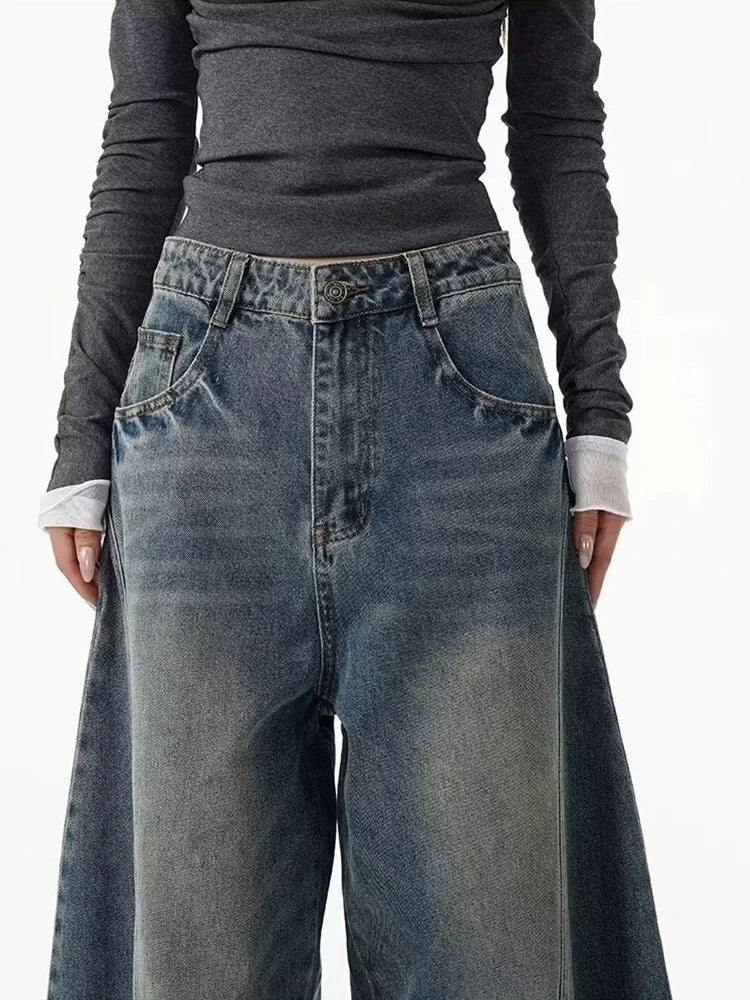 HOUZHOU Y2K Baggy Jeans Women Streetwear Retro Fashion Autumn High Waist Pants Loose Harajuku Wide Leg Denim Trousers Female